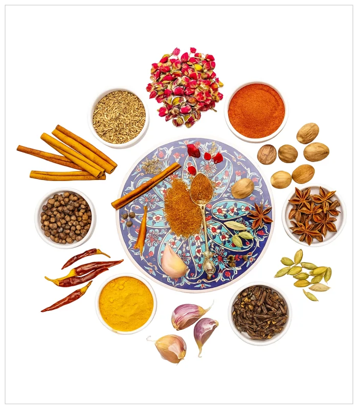 هذا الخليط العطري يُحضَّر بعناية من مجموعة مختارة من التوابل المطحونة الطازجة، ويُستخدم في أطباق الكسكس، الطواجن، الشوربات، وأشهى المأكولات الشرقية والغربية.