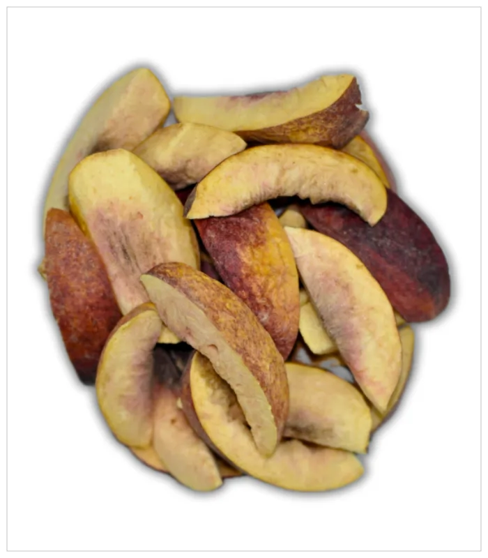 شرائح الخوخ المجففة تُجفف بلطف للحفاظ على قوامها الطري وطعمها الحلو الطبيعي.